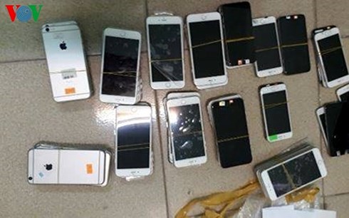 Cơ quan chức năng kiểm tra, phát hiện 68 chiếc điện thoại di động iPhone 6 Plus và 18 chiếc iPhone 6 không rõ nguồn gốc được bày bán tại cừa hàng trên phố Tân Mai, Q. Hoàng Mai, TP Hà Nội.