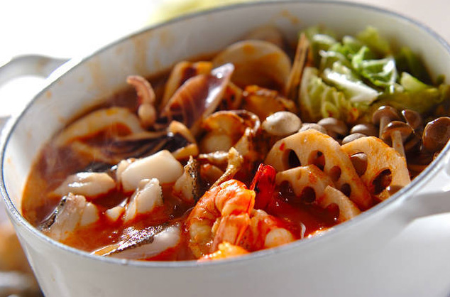 -Khi nồi nước lẩu sôi thì lần lượt cho tôm, cá mực, nghêu vào trước sau đó mới cho nấm, rau... vào sau. Có thể thêm sốt cà chua để nồi lẩu được bắt mắt.