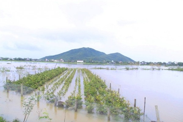 Nhiều vườn mai tại thị xã An Nhơn chìm trong biển nước.