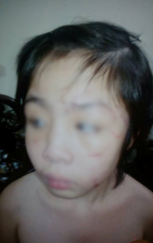“Lúc gặp con tại trụ sở công an, thực sự tôi không nhận ra nổi cháu, một đứa trẻ gầy đen, ăn mặc nhếch nhác, người bị đánh đập dã man với những vết sẹo chi chít trên đầu và khắp người, răng thì bị gẫy… Thú thật, nhìn con lúc đấy đau xót lắm, tôi chỉ biết ôm con và hai mẹ con cùng khóc”, chị N. bật khóc.