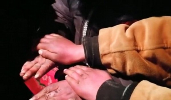 Một bức ảnh khác được chụp bởi People’s Daily cho thấy bàn tay khắc khổ, nứt nẻ của cậu bé trong khi đang làm bài kiểm tra.