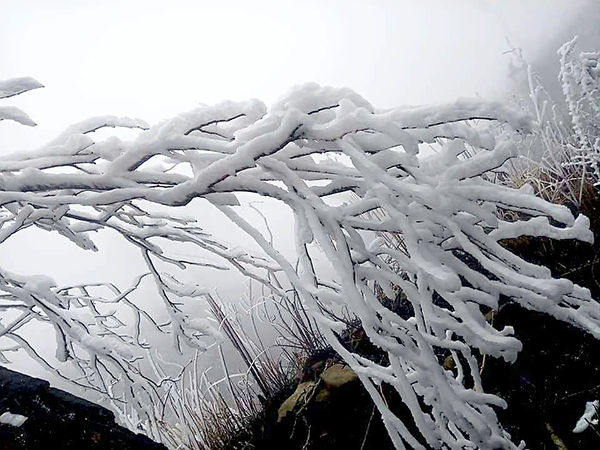 Tại đỉnh núi Lảo Thẩn, xã Y Tý, huyện Bát Xát, sáng 10/1 đã xuất hiện băng giá. Khoảng 11h trưa, nhiều du khách khi chinh phục đỉnh núi Lảo Thẩn đã ghi lại được hình ảnh băng giá phủ trắng xóa.