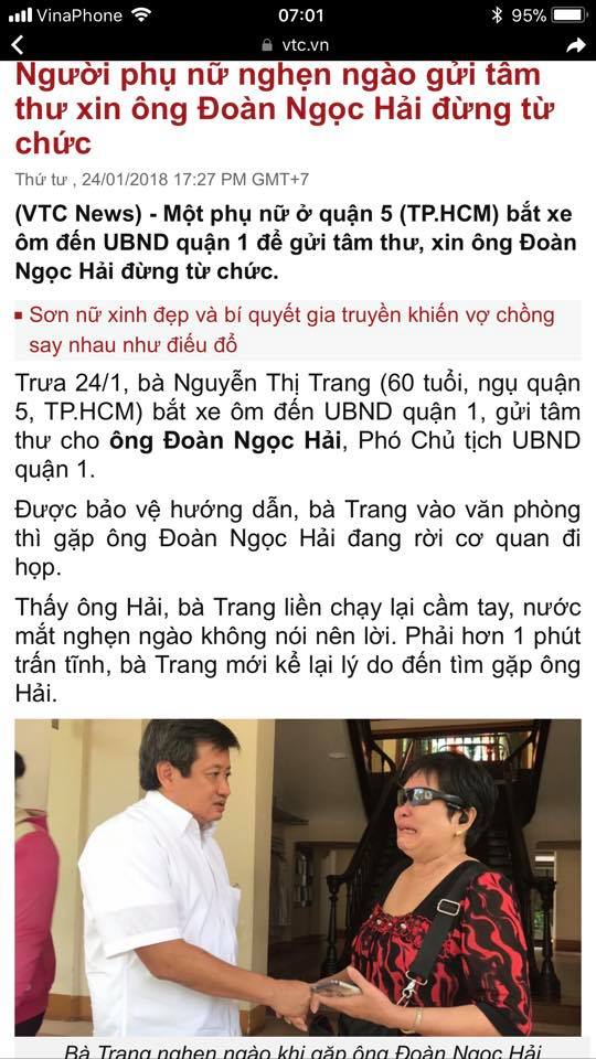 Báo chí Việt nam mới đây đưa tin "Người phụ nữ nghẹn ngào gửi tâm thư xin ông Đoàn Ngọc Hải đừng từ chức". Trong bài báo có nhiều tình tiết rất khó tin. Nhìn dáng dấp của người phụ nữ cũng không giống người nghèo.