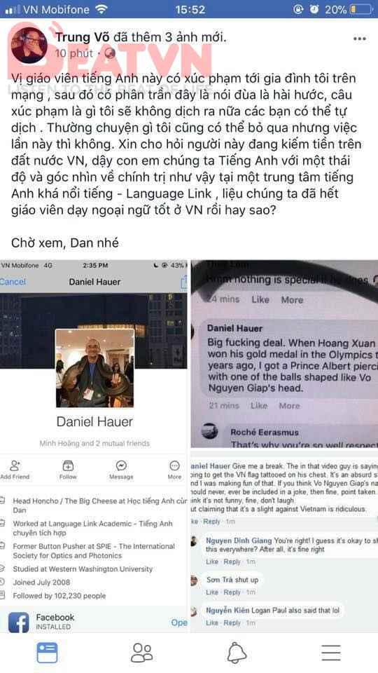 Trung Võ lên tiếng dằn mặt "Thầy" Dan Hauer vì dám xúc phạm Đại Tướng và dè bỉu Việt Nam ăn mừng bóng đá !?!