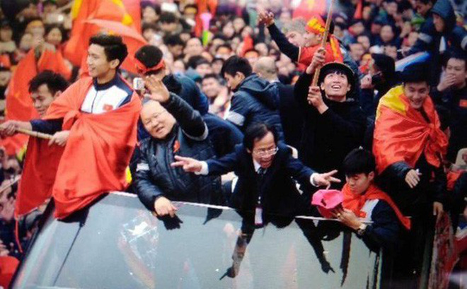 Tôi theo đón đoàn từ 9h sáng, ở cùng đoàn để hỗ trợ truyền thông, giương ảnh Bác Hồ, ảnh HLV Park Hang-seo , hô nhịp để cầu thủ trên xe và NHM cùng hô theo "Việt Nam vô địch". Bây giờ, tôi cũng khàn hết cả tiếng rồi. Nhưng vì tôi có lúc đứng ở vị trí ấy, nên đúng là không nên". Tuy nhiên, trả lời trên báo Người lao động, Phó Chủ tịch phụ trách truyền thông của VFF Nguyễn Xuân Gụ lại đưa ra ý kiến hoàn toàn khác.