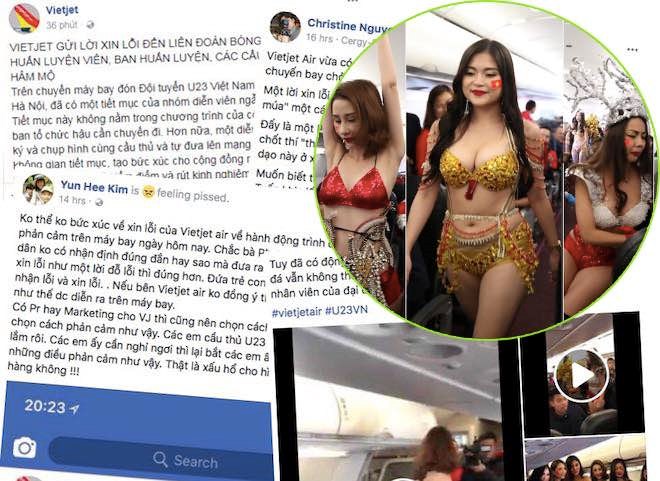 Màn biểu diễn bikini trên chuyến bay đưa U23 Việt Nam từ Trung Quốc về Việt Nam đang bị cộng đồng mạng lên án.