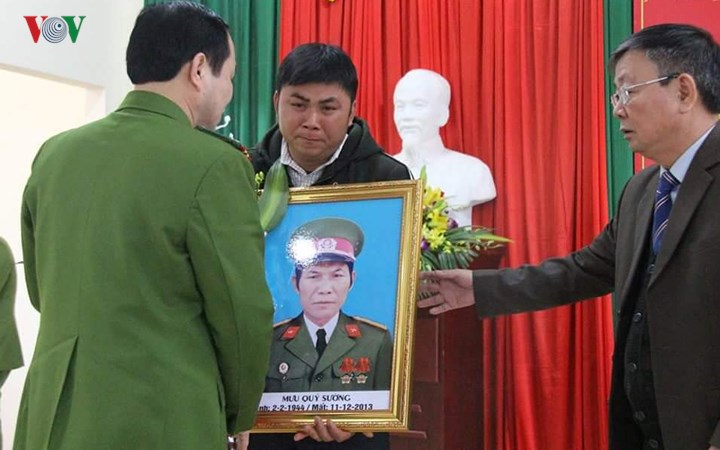 Người thân mang di ảnh ông Mưu Quý Sường đến “nhận” lời xin lỗi từ cơ quan điều tra công an tỉnh Bắc Giang.