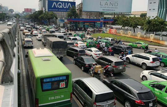 Cửa ngõ sân bay Tân Sơn Nhất đông kín xe mặt đường. Tình trạng xe cộ di chuyển nhúch nhích từng chút một. Khiến ùn tắc xảy ra suốt nhiều giờ trưa ngày 8/2.