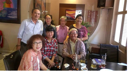 Nhà thơ Phan Lệ Dung(thứ 2, bên trái qua) và nhà thơ Nguyễn Miên Thảo(thứ 3, bên trái qua) trong lần ra mắt tập thơ của nhà thơ Phan Lệ Dung(phu nhân của cố nhà thơ Thái Ngọc San) tại SG vào tháng 10.2014