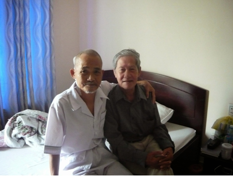 Nhà thơ Nguyễn Miên Thảo trong lần thăm cố nhà thơ Lê Văn Ngăn khi vừa mới mổ khối u não vào tháng 11.2014