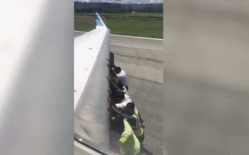 Khoảng hơn 20 người đàn ông đã tham gia đẩy chiếc máy bay ngược trở lại đường băng trong khi một vài hành khách ngồi trên khoang và quay lại toàn bộ quá trình. Một số nguồn tin từ mạng xã hội cho biết chiếc máy bay có thể đã bị hỏng và hành khách được huy động xuống để giúp đẩy máy bay.