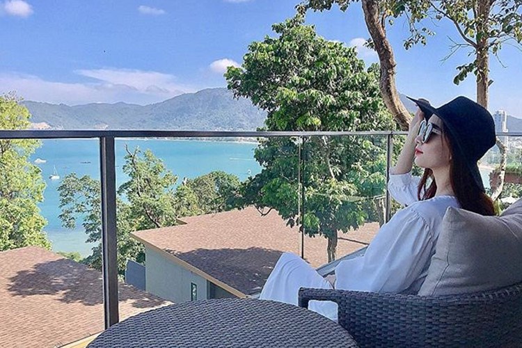 Hoa hậu Đặng Thu Thảo thảnh thơi ngắm cảnh trong một chuyến đi chơi.
