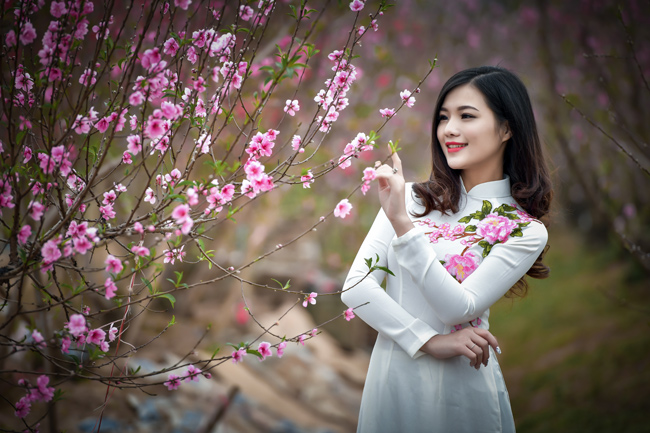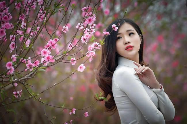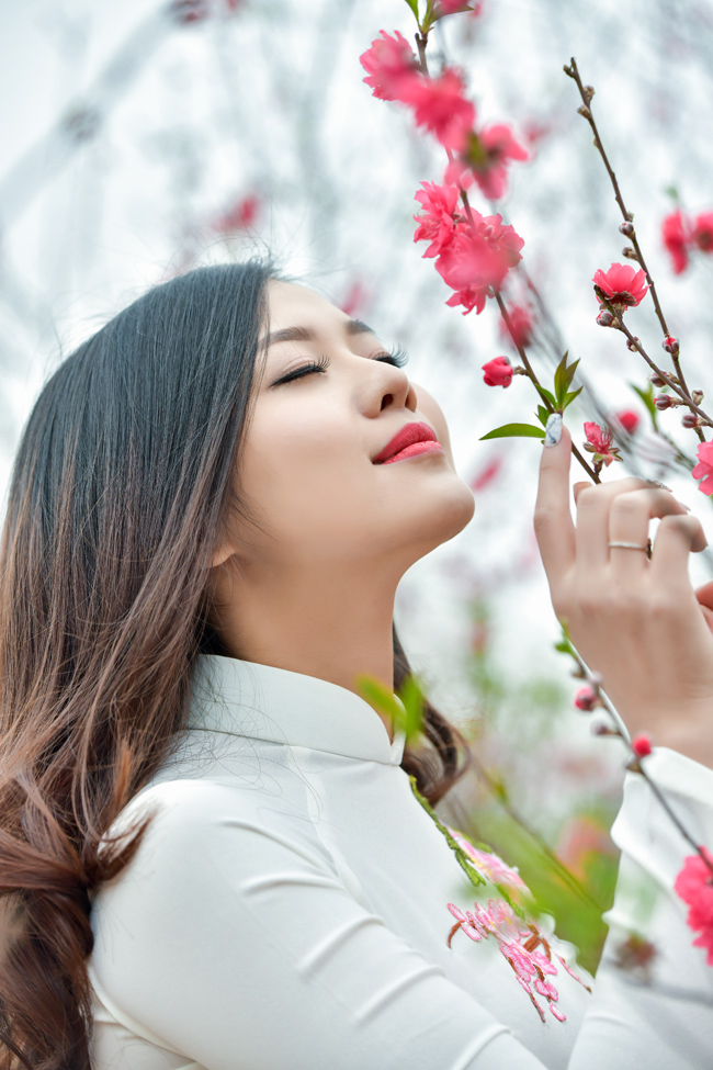 Old  Default Ngắm nhìn vẻ đẹp tươi tắn, mơn mởn của cô gái bên nhánh đào ngày xuân