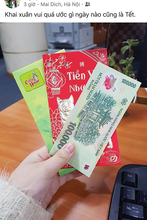 Khoe "chiến tích" lì xì tạo không khí rôm rả cho ngày đi làm đầu năm.