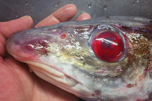 Ngư dân Nga mới bắt được con cá kỳ dị với đôi mắt đỏ như máu.