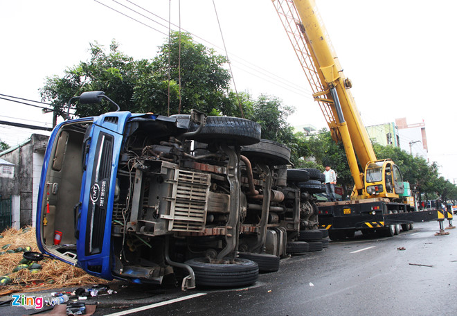 Khi đến ngã ba đường Nguyễn Chánh - Nguyễn Lương Bằng, xe bất ngờ đâm vào dải phân cách cứng. Sau đó, ôtô tải tiếp tục lao về phía trước hơn 100 m, húc đổ cột đèn rồi lật nhào.