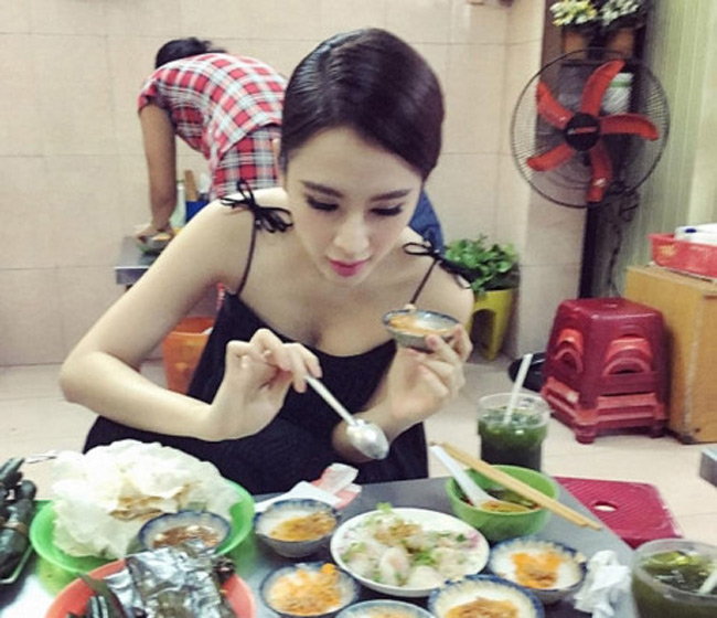 Phi Thanh Vân nhiều lần bị chỉ trích vì ham khoe cơ thể khi chụp hình bên bàn ăn.