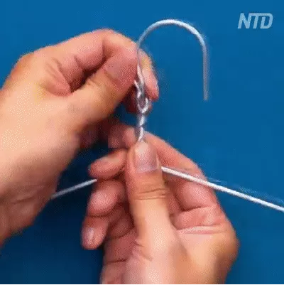 - Bạn lấy một chiếc móc treo quần áo, sau đó sử dụng lực tay để mở vòng vặn xoắn.