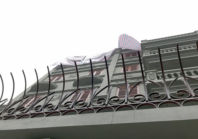 Tường rào được lắp thêm bảo vệ bằng sắt nhọn khá chắc chắn
