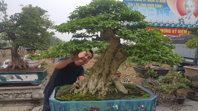 "Cây kiểng của tôi có dáng siêu, bộ bệ lớn và tay cành rất côn và cây cao hơn 1m, hiện gia đình đã đang đưa ra giá xuất vườn chính thức cho khách là 350 triệu đồng" - anh Toản nói.