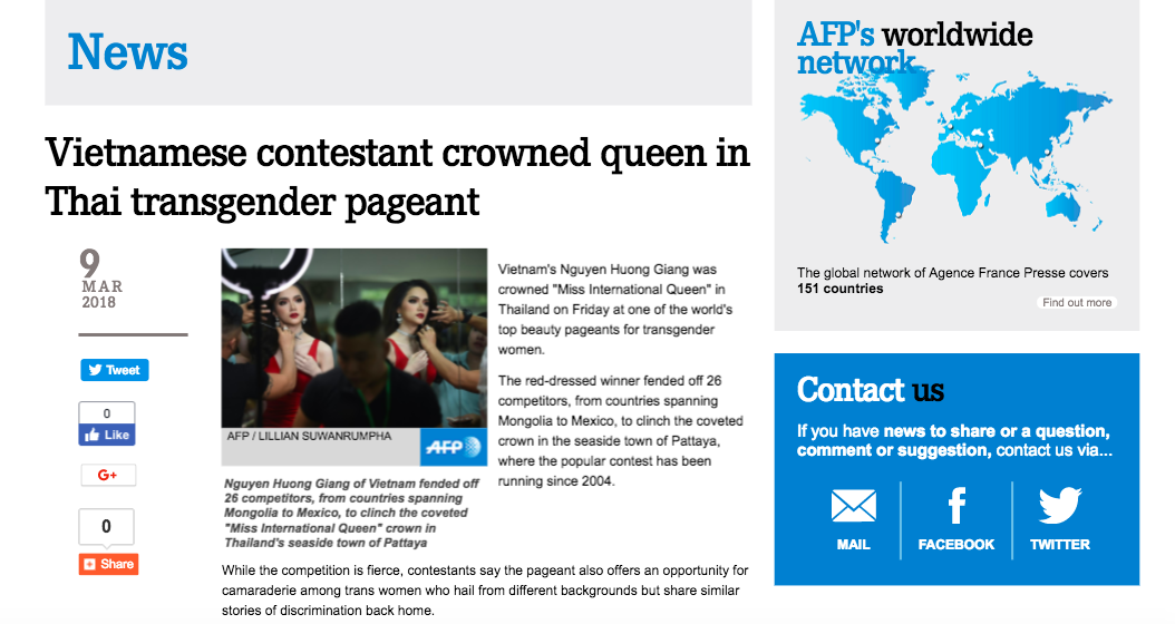 HH Hương Giang tràn ngập ảnh trên các trang báo quốc tế
