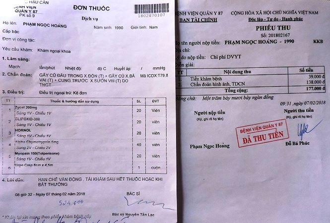 Đơn thuốc của anh Hoàng cho thấy, bị nữ tài xế tông dẫn đến đa chấn thương