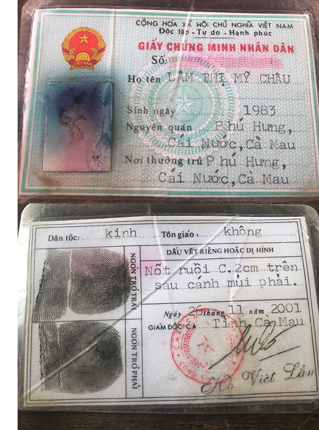 Hình trên chứng minh nhân dân của người tên Lâm Thị Mỹ Châu đã bị hư hỏng ẢNH: GIA BÁCH