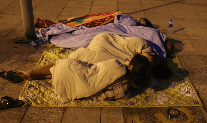 Các cư dân phải ngụ vạ vật ngoài đường sau khi xảy ra sự cố cháy (ảnh FB)