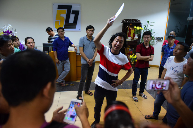 Cư dân tên Mai cho rằng bị một người đàn ông của công ty Năm Bảy Bảy đe doạ. Chị kể, người đàn ông quát to "chị đưa người dân tới tầng 2 để làm gì, chị có vấn đề gì với chủ đầu tư?". Khi bị người dân bức xúc, phía bên đại diện chủ đầu tư liền đẩy người đàn ông vào văn phòng.
