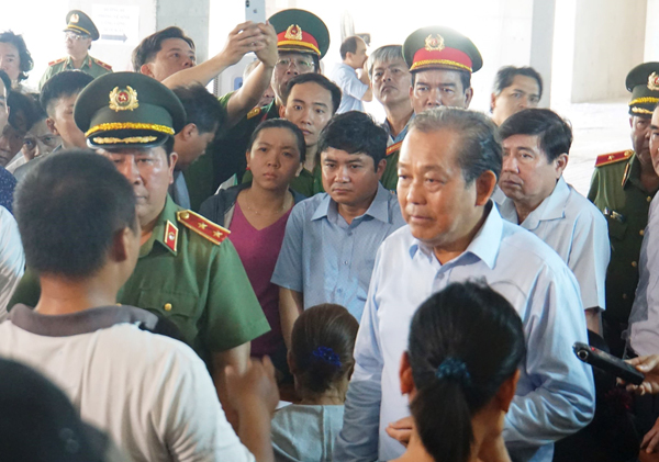 Phó Thủ tướng Thường trực Chính phủ Trương Hòa Bình thăm cư dân chung cư Carina Plaza và chỉ đạo khắc phục hậu quả vụ cháy