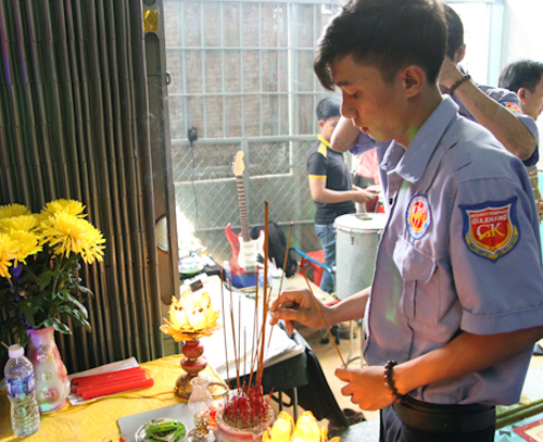 An và Sang thắp nhang tưởng nhớ ông Trần Văn An.