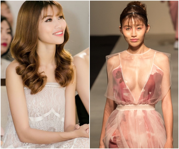 Một chân dài khác cũng gia nhập 'team ngực khủng' là Phí Phương Anh. Bộ ngực tròn trịa không ăn nhập với thân hình gầy nhẳng khiến cô vướng vào nghi án dao kéo. Tuy nhiên, cũng như nhiều người đẹp khác, Phí Phương Anh chọn cách giữ im lặng trước những tin đồn.