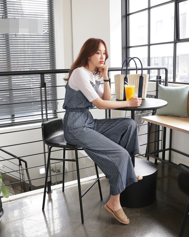 Kết hợp thông minh giữa jumpsuit cùng đôi dép lê quai bản to bắt mắt người nhìn.