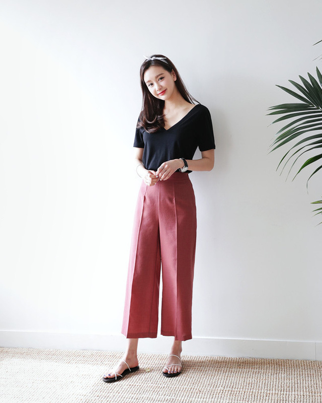 Dép lê quai mảnh này phối cùng áo thun cổ tim và quần culottes dành cho những cô nàng điệu đà, giúp bạn tự tin xuống phố ngày hè.