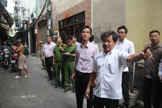 Sáng 3.4, ông Đoàn Ngọc Hải, Phó chủ tịch UBND quận 1, TP.HCM cùng đoàn liên ngành gồm trật tự đô thị, PCCC quận kiểm tra phòng chống cháy nổ trên địa bàn.
