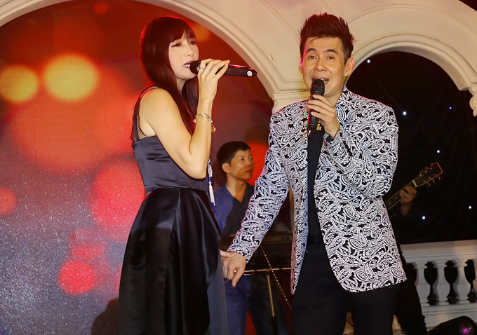 Nữ diễn viên vui vẻ hội ngộ anh kết nghĩa - ca sĩ Đoan Trường trong sự kiện.