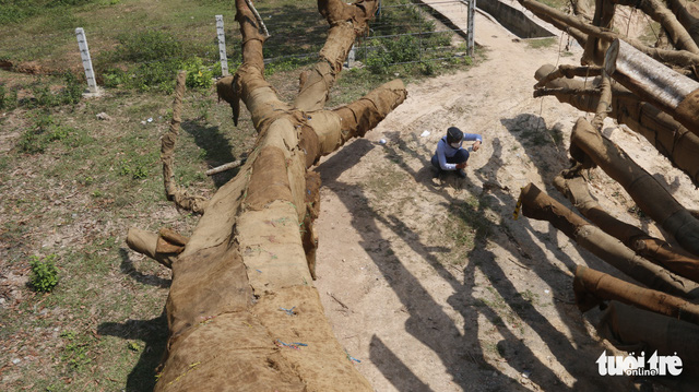 Ông Điệp cho biết cây đa sộp có đường kính khoảng 1,4m, chiều cao dưới cành là 7m. Do ảnh hưởng của cơn bão số 12 (tháng 10-2017) đã làm cây bị nghiêng, khả năng gãy đổ vào nhà rất cao nên ông Điệp bán cây cho ông Quân.
