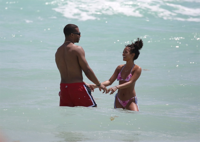 Karrueche đi tắm biển với bạn trai mới - cầu thủ bóng bầu dục Victor Cruz.