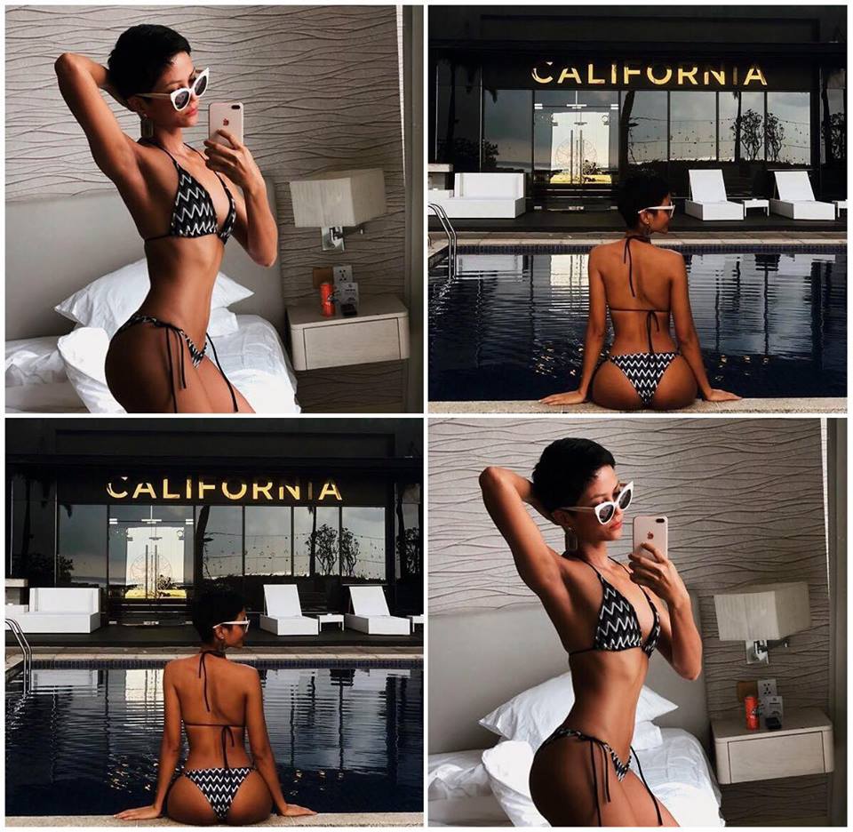Trưa 16/4, cư dân mạng chia sẻ hình ảnh Hoa hậu Hoàn vũ Việt Nam 2017 H'Hen Niê khoe dáng trong trang phục bikini 2 mảnh, tự tin khoe vóc dáng của mình với thân hình săn chắc.