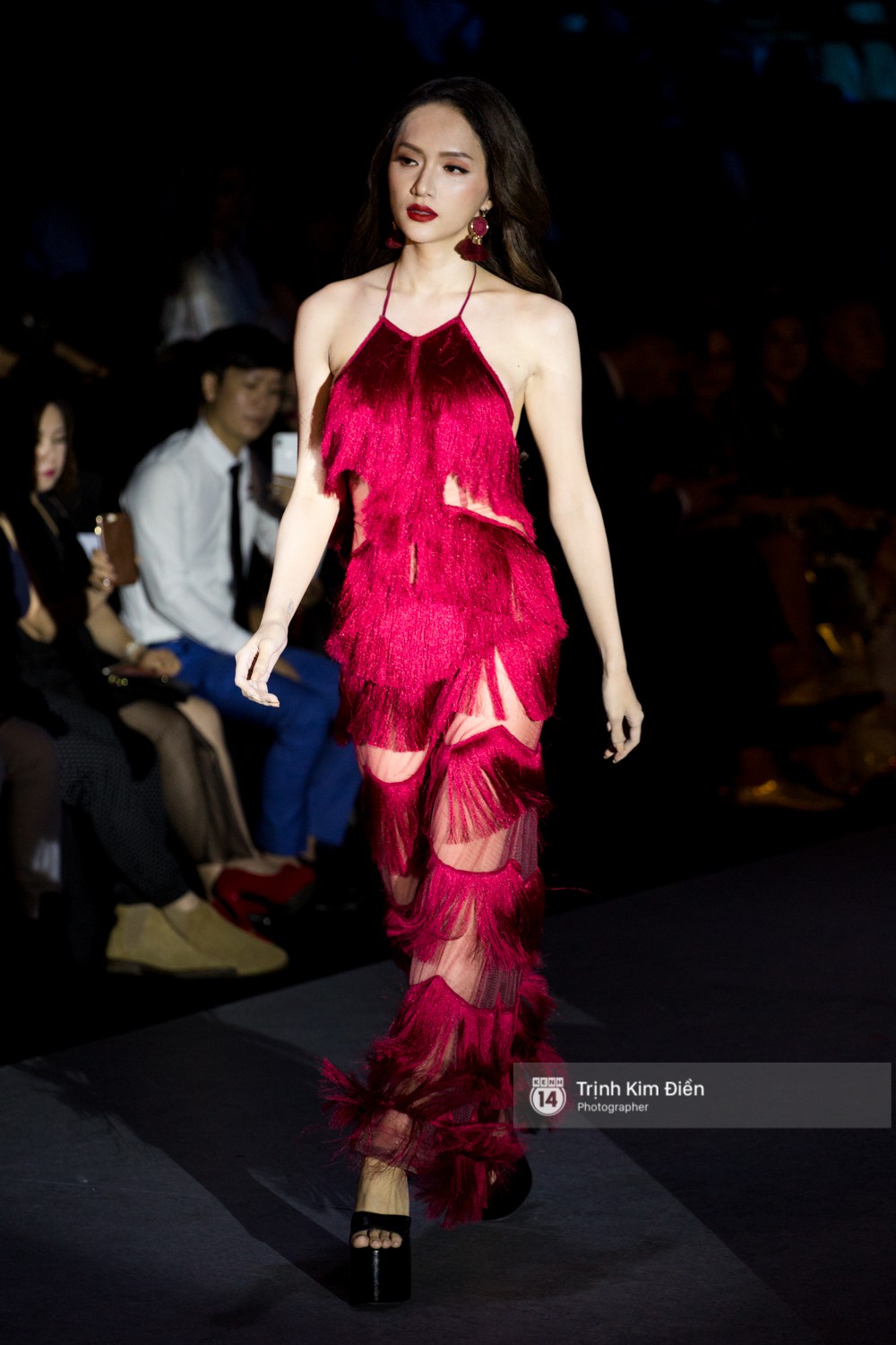 Một trong những điều thú vị trong tối 19/4 chính là màn catwalk của Hoa hậu Chuyển giới Hương Giang. Đây cũng là lần đầu tiên người đẹp giữ ngôi vedette kể từ sau khi lập kỳ tích tại Thái Lan vào hồi đầu năm.