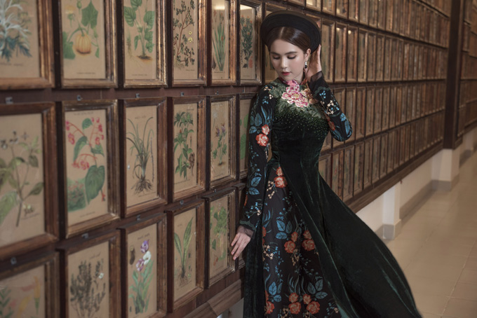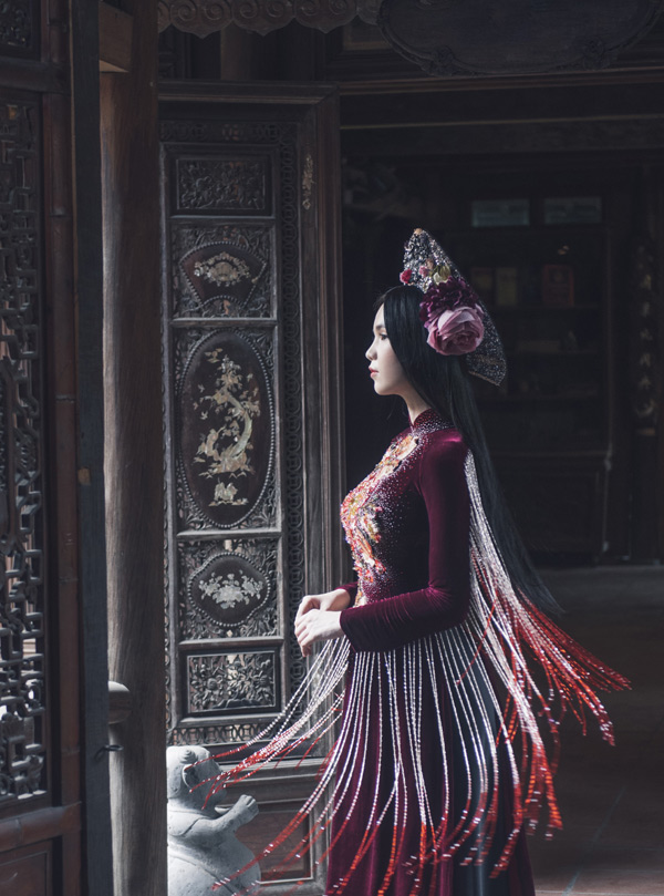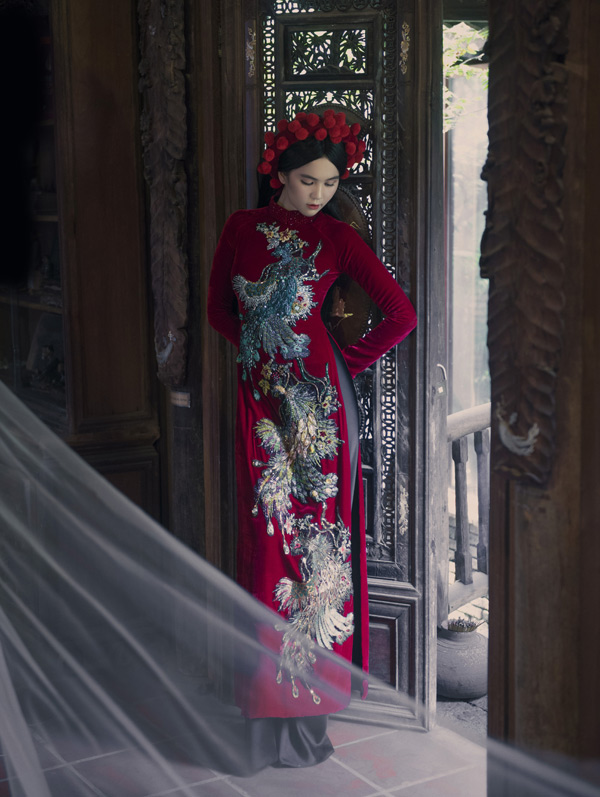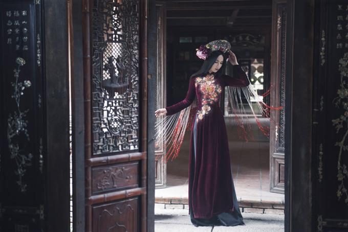 Bộ sưu tập áo dài 'Heritage' được may chủ yếu bằng chất liệu vải nhung tuyết tôn vẻ sang trọng cho người mặc.