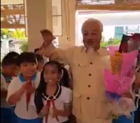 Bác Hồ mới xuất hiện tại Việt Nam.Bác Hồ đứng nhảy múa giữa các học sinh tiểu học trông vô cùng phản cảm và khôi hài. Nếu có sự tự do lựa chọn, có thầy cô giáo nào dạy học sinh bài hát ca tụng bác Hồ, tác giả biển máu Cải cách ruộng đất với hơn 200 ngàn người bị giết oan, đồng thời cũng là người chủ trương "đốt cả dãy Trường Sơn" để chiếm miền Nam?