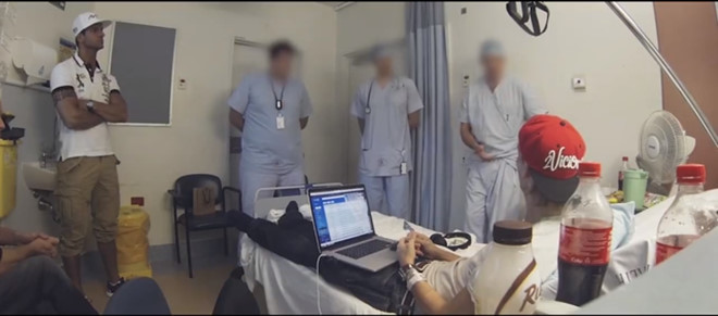 Avicii kiểm tra sức khỏe tại bệnh viện khi anh đang trong một chuyến lưu diễn của ḿnh. Ảnh: Avicii: True Story.