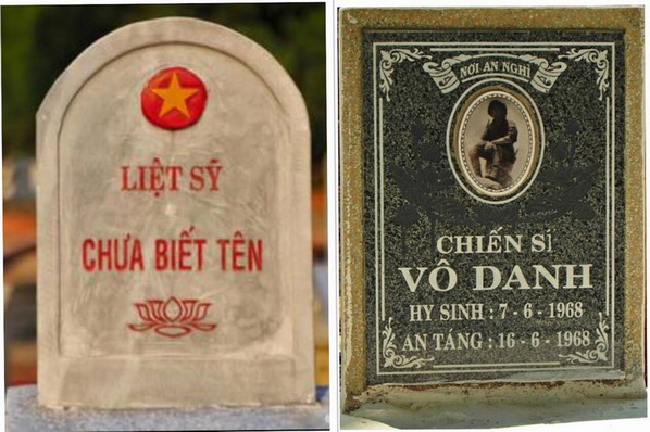 Chỉ đọc hai tấm mộ bia đã thấy ngay trình độ văn hoá của hai chế độ quá chênh lệch.