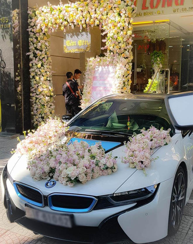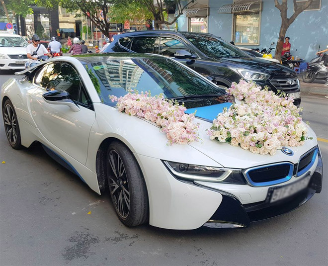 Ngoài ra, chiếc xe sang BMW i8 cũng được chuẩn bị tươm tất và trang hoàng bên ngoài để làm phương tiện đưa rước cô dâu vào buổi sáng cùng ngày.