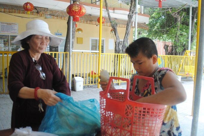 Bà Quý chuẩn bị đồ ăn chiều cho các bé.