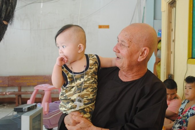 Ông Sức chơi đùa cùng các bé nhỏ ở cở sở