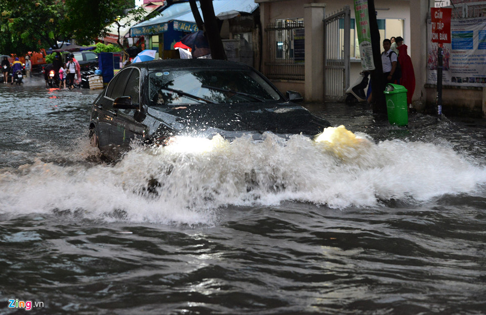 Cơn mưa lớn chiều 8/5 đã làm nhiều tuyến đường trên địa bàn quận 2, Bình Thạnh, Gò Vấp... bị ngập sâu. Tại phường Thảo Điền, quận 2, một số tuyến đường như Quốc Hương, Tống Hữu Định, số 4... chìm trong nước nhiều giờ.