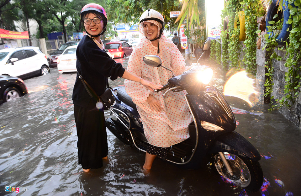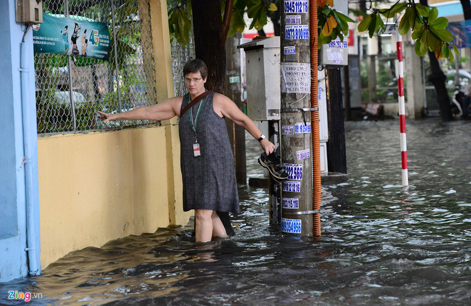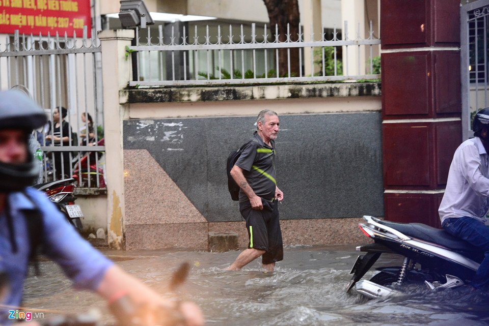Old  Default Hình ảnh người nước ngoài lội nước bì bõm về nhà sau cơn mưa ở TP.HCM