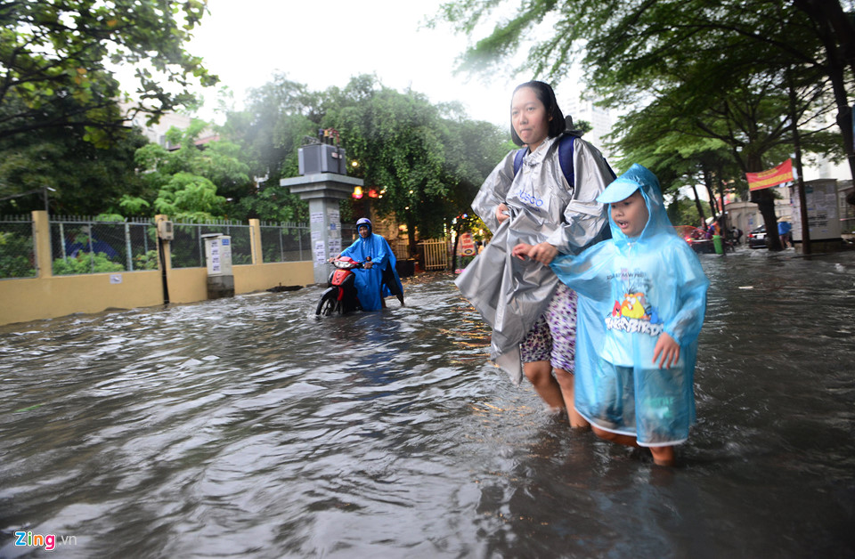 Trời mưa, đường ngập sâu vào giờ tan tầm nên nhiều học sinh bị ướt hết quần áo, lội về nhà giữa "biển nước".